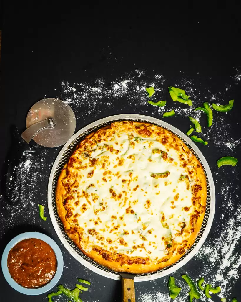 Hand tossed, Neapolitan sauce, Brothers’ mild pepperoni, mushrooms & green peppers all under cheese.