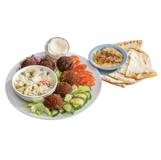 Include Mediterranean salad, hummus,basmati rice, pita & garlic sauce.