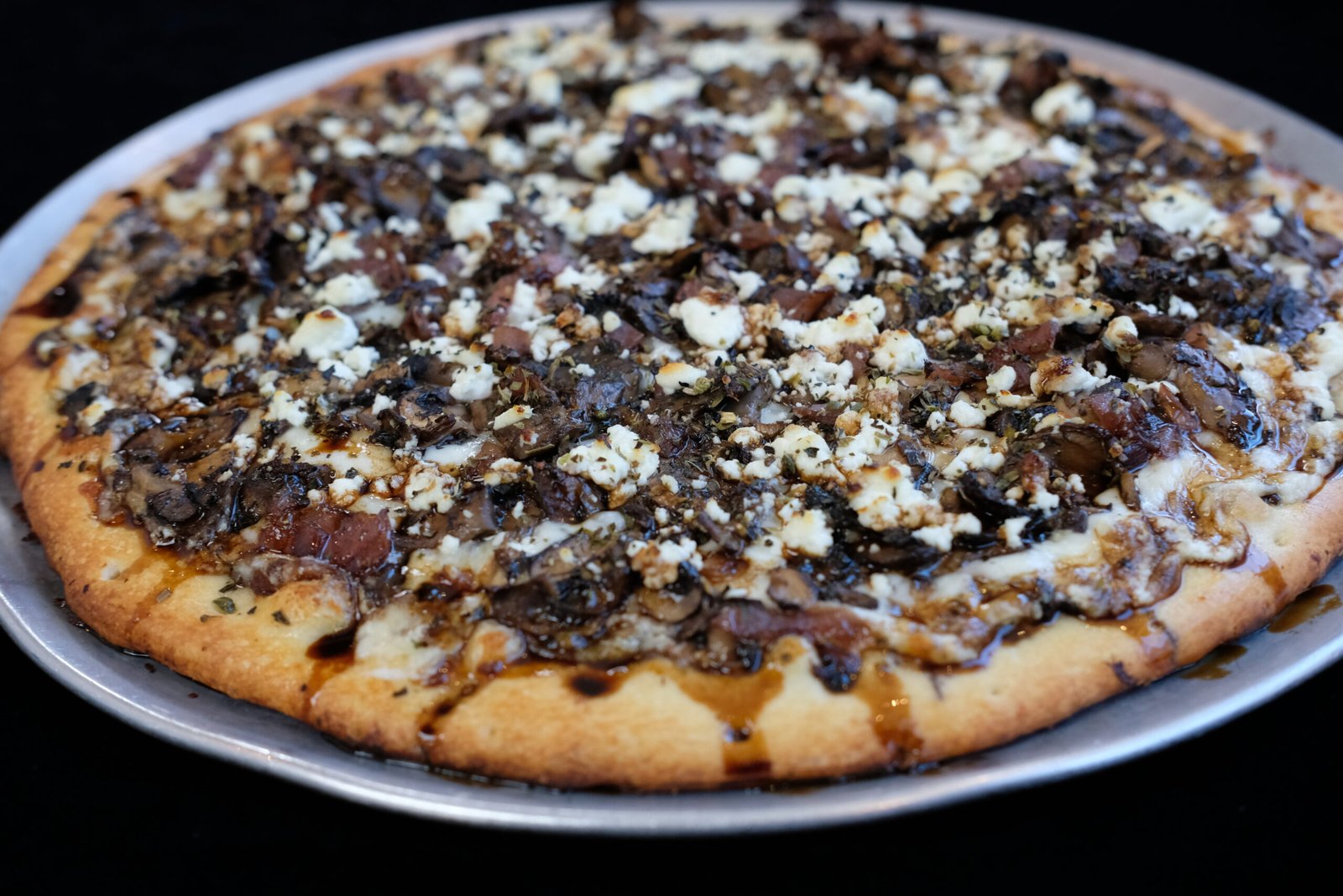 Ricotta and garlic sauce, mozzarella, sautéed mushrooms, caramelized onions, goat cheese & balsamic reduction.