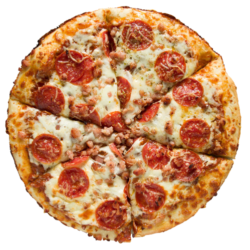 Neapolitan pizza sauce, salami, mozzarella, pepperoni, bacon crumble, hamburger, sausage, herbs & Romano.