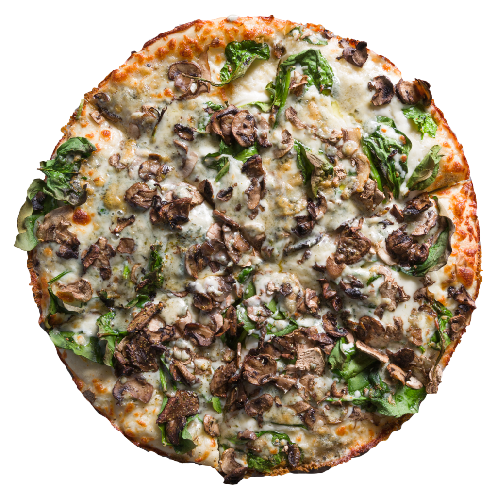Light garlic sauce, spinach, white mushrooms, mozzarella, Gorgonzola & Pecorino Romano.