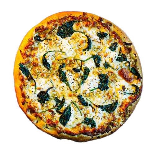 Pesto sauce, mozzarella, sautΓ©ed spinach, fresh garlic, Parmigianino, pine nuts, basil & ricotta.